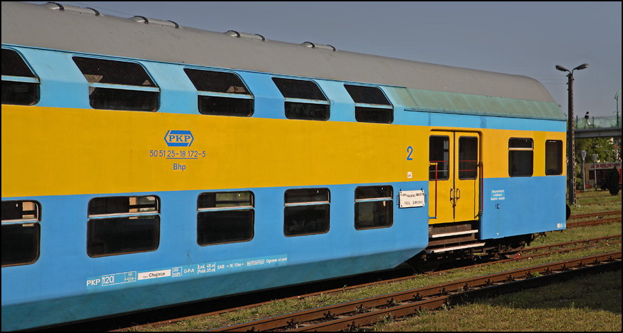 Ja bym dał inny kadr - prostopadle do składu - wtedy zobaczymy tablicę, zszedłbym z rampy i nawet obniżył - wtedy skład lepiej się zaprezentuje - "zawiśnie na kilku cm2", puste wagony i widok przez szybę na drugą stronę torowiska dodatkowo umocni efekt - lekkie, kruche 40 ton. poza tym, popracuj na słowami kluczowymi - nie widać dworca a torowisko, i katalog - technika byłaby bardziej na miejscu, a poza tym to mi się podoba - tylko trochę bym przyciemnił i lekko opuścił kolory - bo pomarańcz razi... - jak się czyta "swoje" komentarze przy własnych zdjęciach?