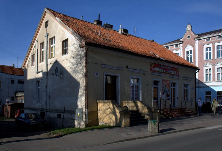 Ten budynek posiadał niegdyś tylko jedno wejście od frontu. Drugie drzwi i schody ( te bez kul ) zostały dobudowane dla potrzeb sklepu.