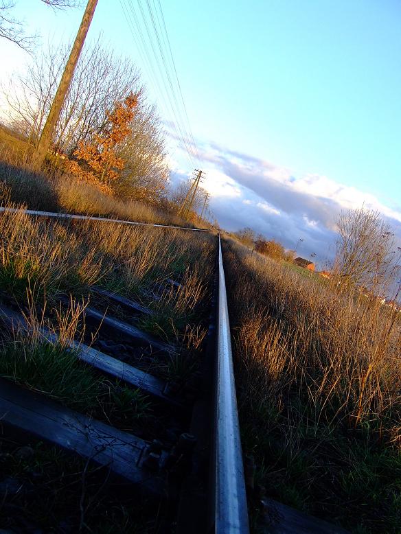 po trzecie kompozycja - ciekawa pod warunkiem ze szyna wychodziłaby centralnie w środku podstawy zdjęcia i zbiegała idealnie do środka