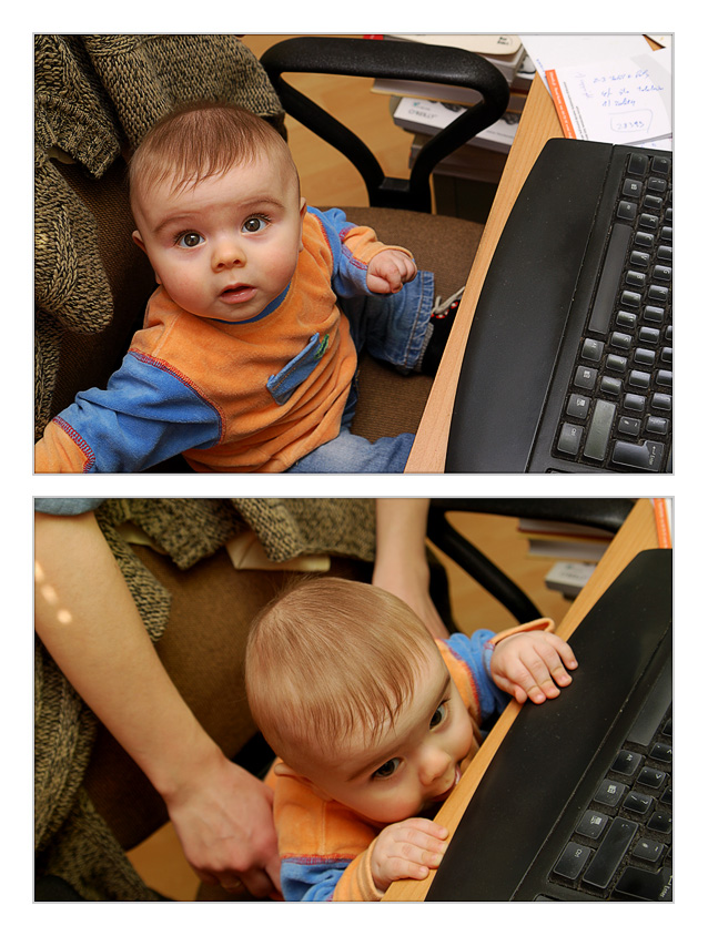 Na górnym zdjęciu fajnie zmarszczył czoło