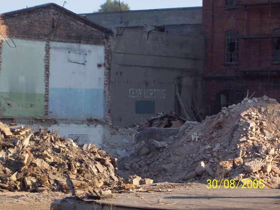 Wyburzone magazyny ZEM POLMO podczas budowy Supermarketu w 2005 roku.