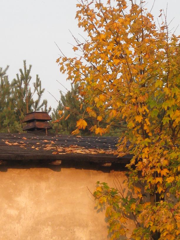 | Słowa kluczowe: | Dach drzewo kominek liście żółty niebo |