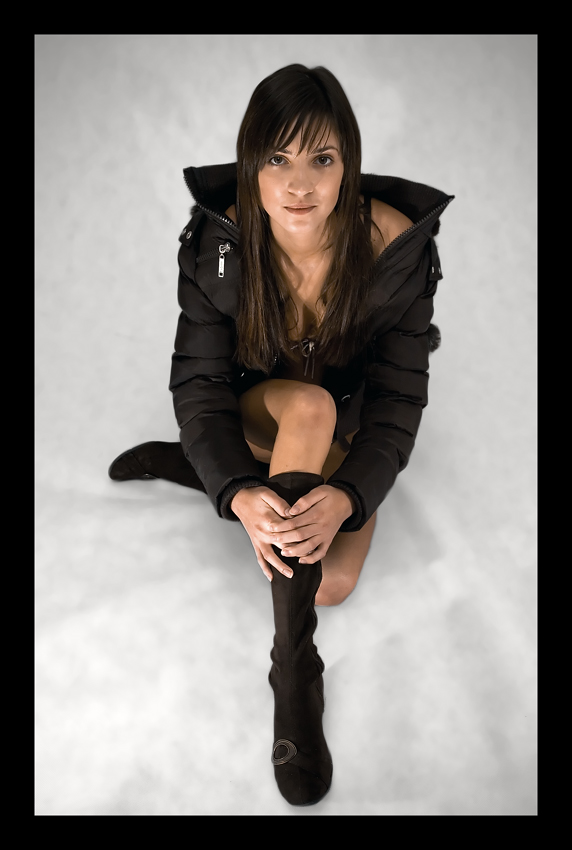 Odważna kompozycja długiej modelki w długim kadrze, broda źle oświetlona i te cienie na policzkach od nosa. ogólnie za bardzo blikuje.