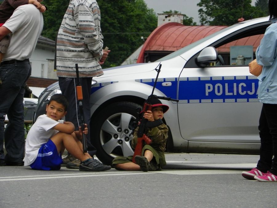 maluchy sobie siedziały z karabinami przy wozie policyjnym to sobie cyknęłam ;) (tour de pologne - Wisła)