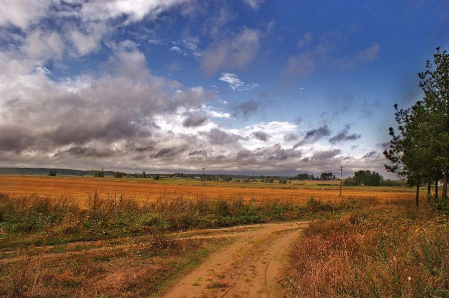 | Słowa kluczowe: | Pola zabudowania droga chmury drzewa |