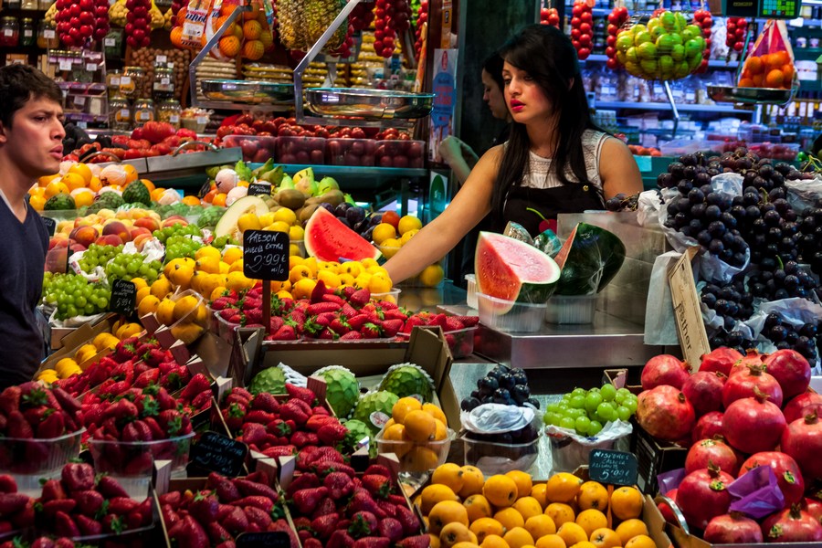 ... e tam dziewczę, moją uwagę przykuwa feeria barw stworzona przez owoce i warzywa