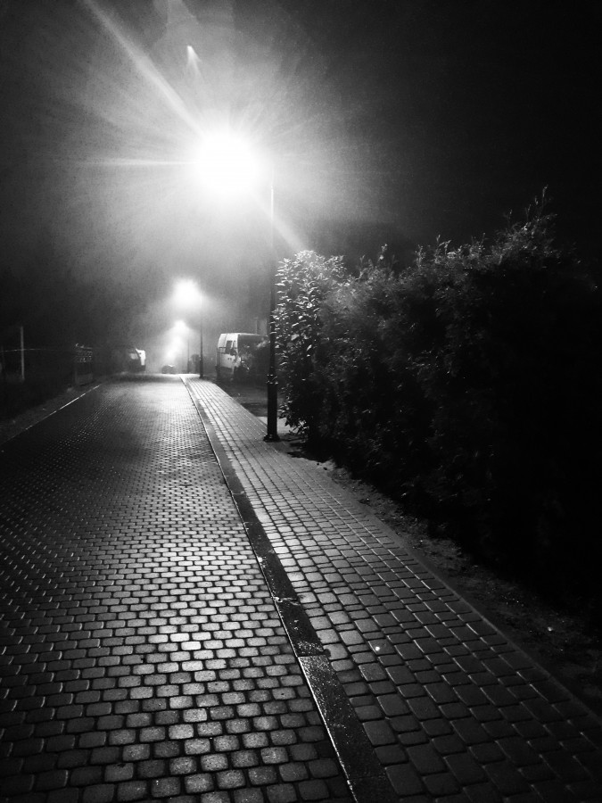 Ul. Piękna wcześnie rano w mglisty poranek .Kwidzyn.