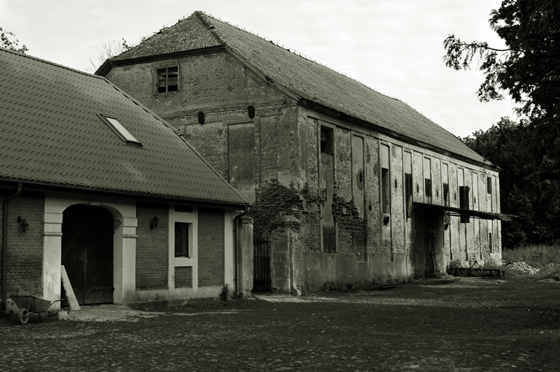 Bardzo mały fragment budynków gospodarczych przy pałacu w Kamieńcu . Ocalało ich więcej .