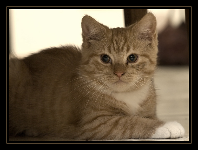 ta kociczka ma taki kolor naturalnie podobno jej mama rozpustnica rodem z persji puściła się z naszym leniem dachowym hhehhe i wyszło co wyszło. a uwagi co do pielęgnacji przekaze właścicielom (DAAD kolory sepii lubie, ale jeszcze bardziej lubie kolory mroku, kontrastu w zimnych tonacjach barwnych, grozy itp...szkoda ze nie uchowaly sie fotki ktore tu byly wczesniej a jakos dziwnie "zniknely". jak znajde chwile to powrzucam to co bylo, a napewno po prosbie Krzaqa te z warsztatow jesiennych)