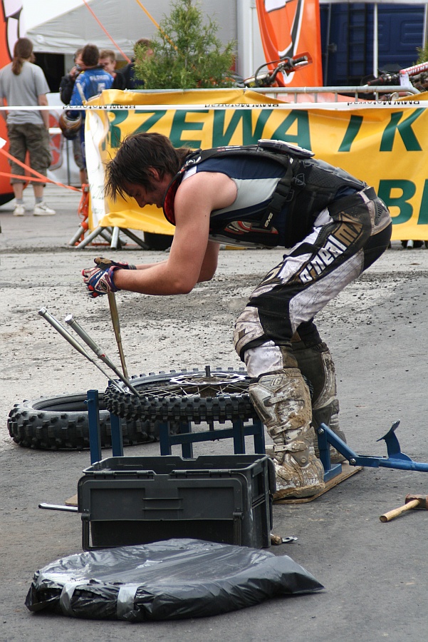 Mimo potwornego zmęczenia trzeba jeszcze wymienić opony przed zdaniem motocykla do parku zamkniętego.