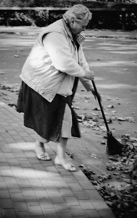 | Słowa kluczowe: | kobieta miotła liście |