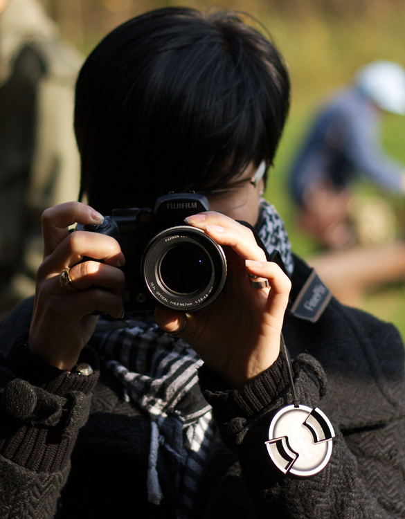 Pani jesień sobie całkiem dobrze radzi z obsługą aparatu