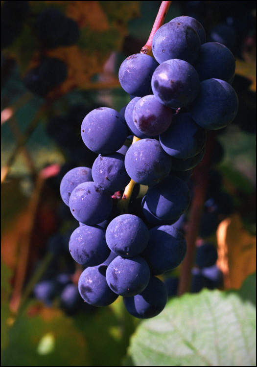 podoba mi się,kiść winogron na pierwszym planie ma super kolorki i światło, a tło jak pastelami namalowane super....!!!!