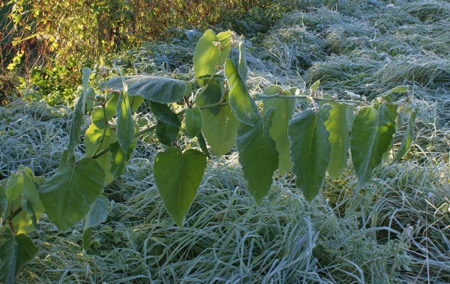 Trawa i liście po pierwszym przymrozku w tym roku