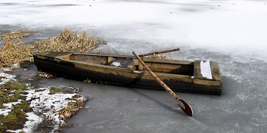 Zamarznięta łódka na jeziorze