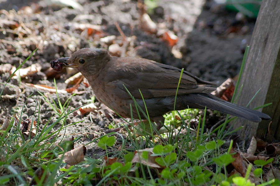 z OTOPU nie jestem , ale odpowiedź na Twoje pytanie, wydaje mi się, że znam. Jest to Turdus merula, czyli Kos (młody lub samica tego gatunku, samiec jest cały czarny). Mają u mnie gniazda w ogrodzie. Kilka razy znalazłem rozszarpane szczątki tych ptaków. Wstrętne koty mojej sąsiadki urządzają sobie polowania..