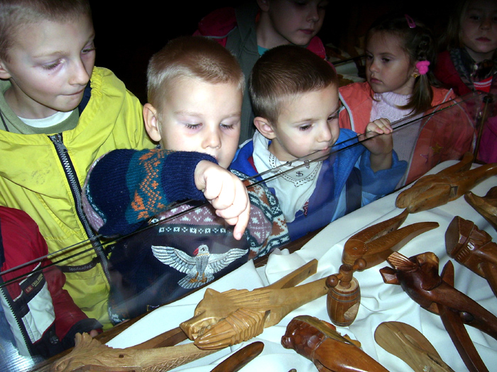 przedszkolaki na wystawie dziadków do orzechów w Chełmnie