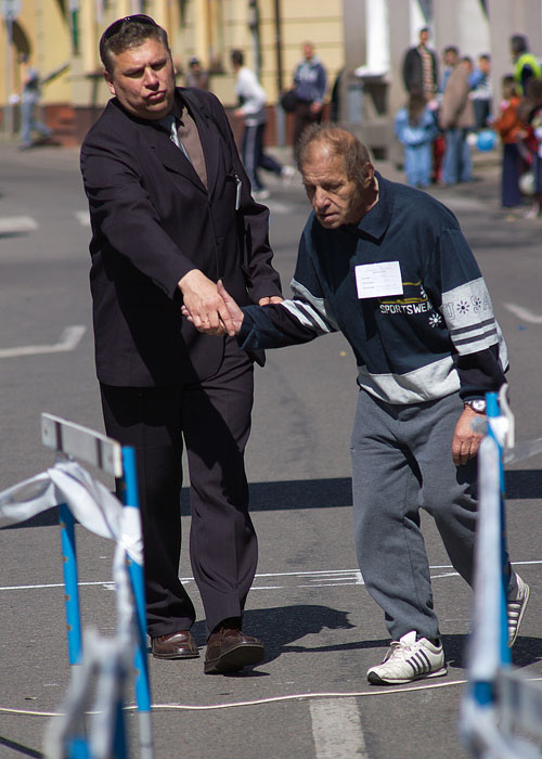 Jeden z niepełnosprawnych zawodników na mecie biegu na dystansie 700 metrów
