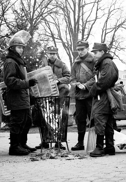 Zdjęcie zrobione podczas inscenizacji wprowadzenia stanu wojennego.