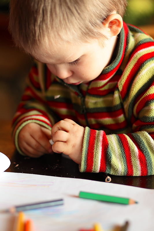 Światełko fajowe, temacik również, ale kredki na pierwszym planie mogłeś pokazać. Do tego GO przydałaby się do dłoni prawej ręki. Ile smyku ma lat? Bo mój właśnie też zaczyna temperować.