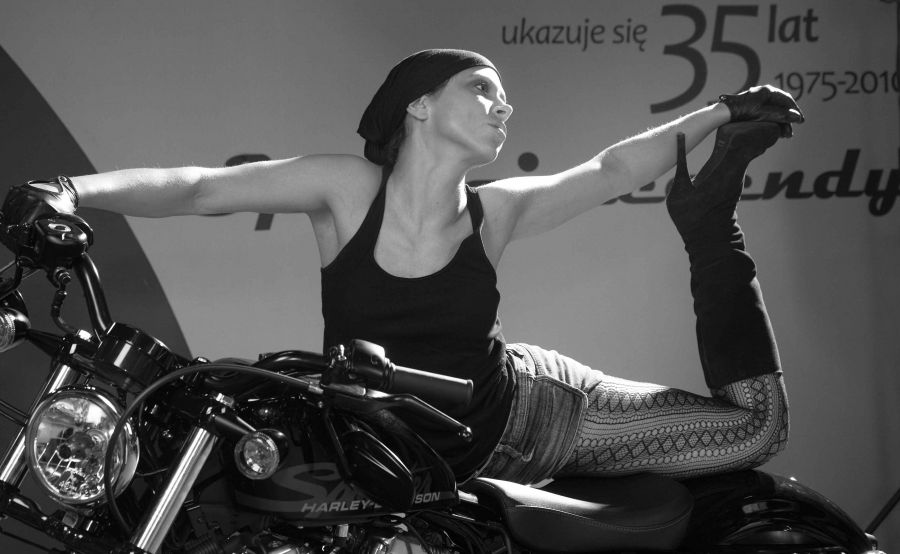 2. Modelka w pozie takiej że na pewno nie da rady jechać,