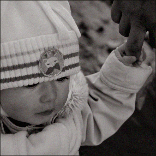 szkoda, że małej Lenie czapeczka tak mocno zsunęła sie na oczka... Fajny kontrast małej rączki i dużej silnej ręki.