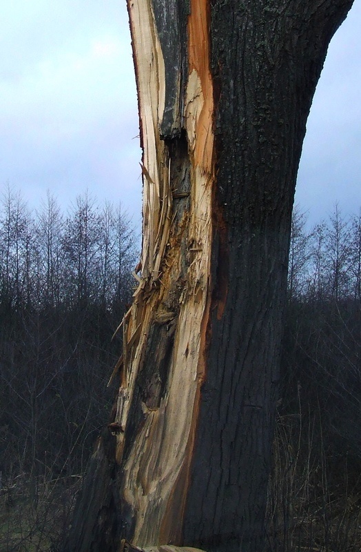 ktoś ładnie musiał "przyfasolić" w to drzewo, żeby zrobić taką wyrwe