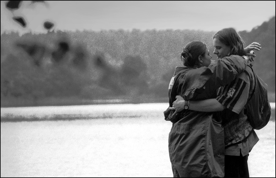 Według mnie zabiegi artystyczne swą brzydotą zmuszają widza do skupienia sie na tym co jest naistotniejsze na tym zdjęciu, wzrok dwóch ludzi ku sobie wyrażający łączące ich uczucie.