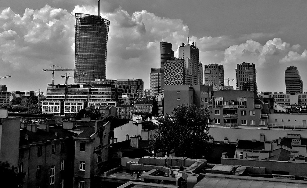 Widok z Woli na nowe wieżowce