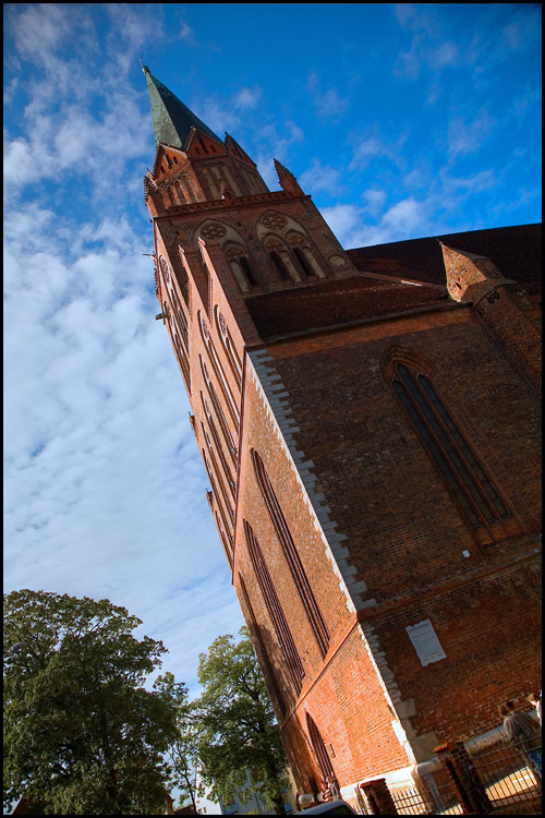 Jeden z najwyższych w kraju zbudowany 1303-1370 90 m wysokości. Kościół Mariacki w Trzebiatowie.