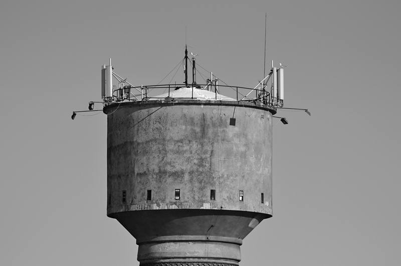 Wieża ciśnień z antenami robione z mostu przy łużyckiej