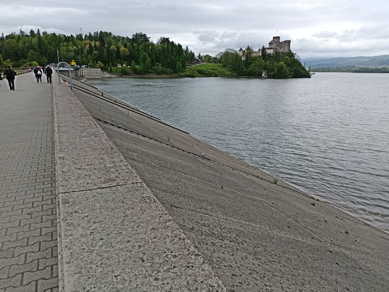 Zamek w Niedzicy , fragment zapory na jeziorze Czorsztyńskim