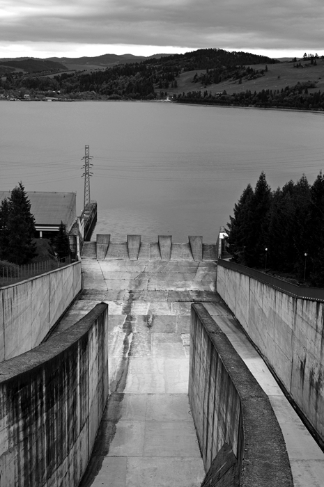 Fragment spustu wody z jeziora czorsztyńskiego na zaporze w Niedzicy