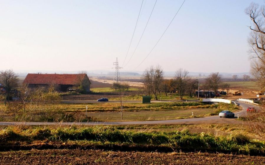 Widok na wytyczoną drogę łączącą Kwidzyn z mostem