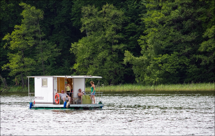 ...a najlepiej żeby boczna wogóle nie istniała. Nie mam pojęcia, ale pewnie takim campingem mało kto pływa po Jezioraku i to jeszcze trójką ze sternikiem. Brawo!