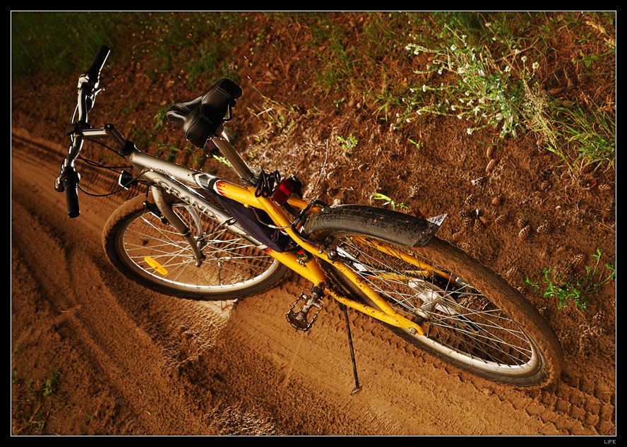 phehe na ubitym gruncie ciężko zostawić ślady prowadzonego roweru jeśli o to chodzi to nie było tu żadnej manipulacji (obok są nawet ślady od stopki, bo był przestawiany)